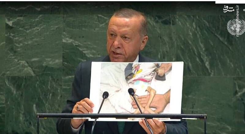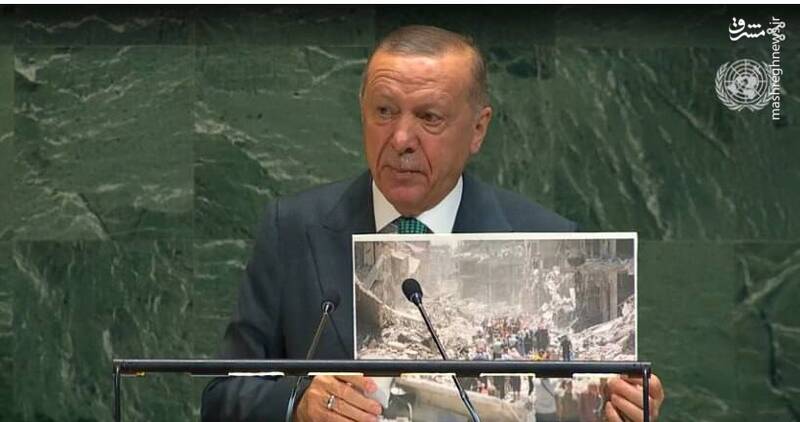 تصاویر تراژدی غزه در دستان اردوغان در سازمان ملل