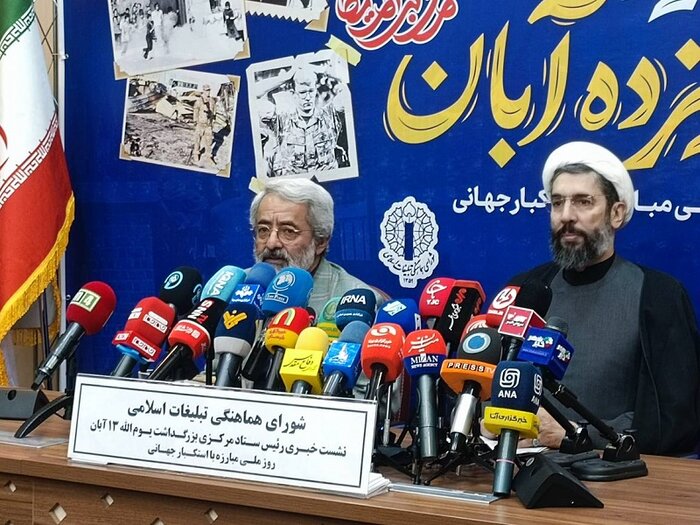 به گزارش روایت فردا حجت الاسلام مصطفی رستمی امروز، یکشنبه ۱۱ آبان در نشست خبری اعلام برنامه های یوم الله ۱۳ آبان گفت: مراسم بزرگداشت سیزدهم آبان در تهران از ساعت ۹ صبح در میدان فلسطین آغاز می شود و راهپیمایان به سمت لانه جاسوسی سابق آمریکا حرکت خواهند کرد. چهار هزار و ۵۰۰ خبرنگار برنامه های ۱۳ آبان در سراسر کشور را پوشش خواهند داد.